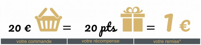 20 € de commande = 20 points = 1€ de remise (hors frais de port)