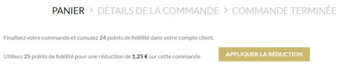 Pour utiliser vos points, vous appliquez la réduction lors de la validation de votre panier