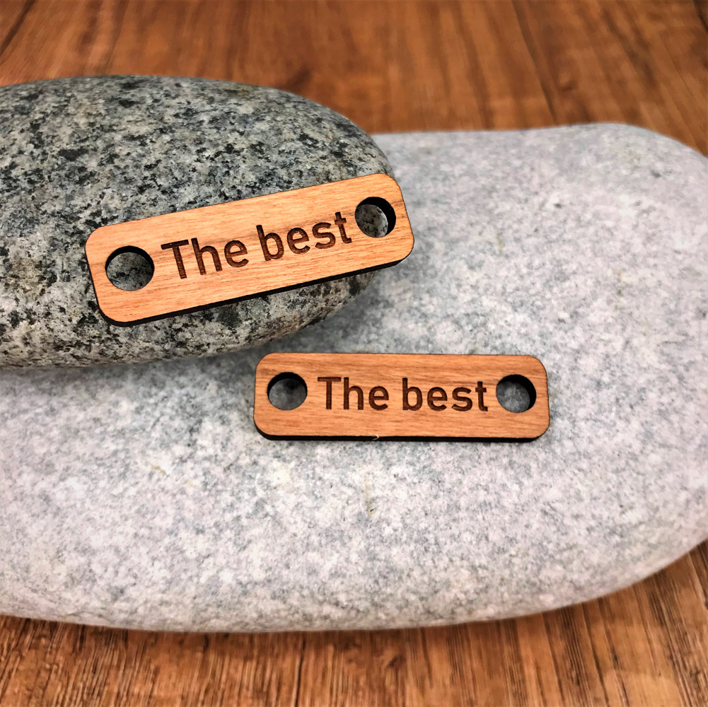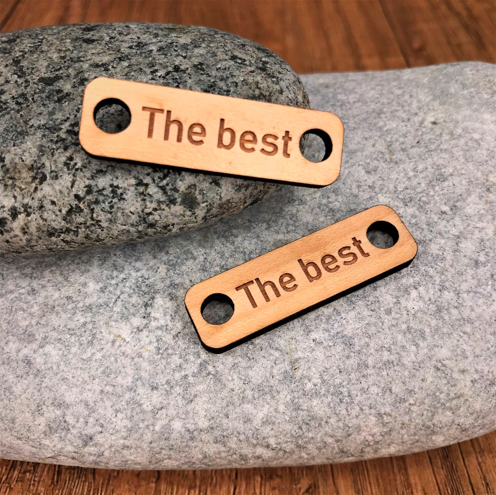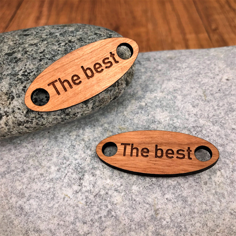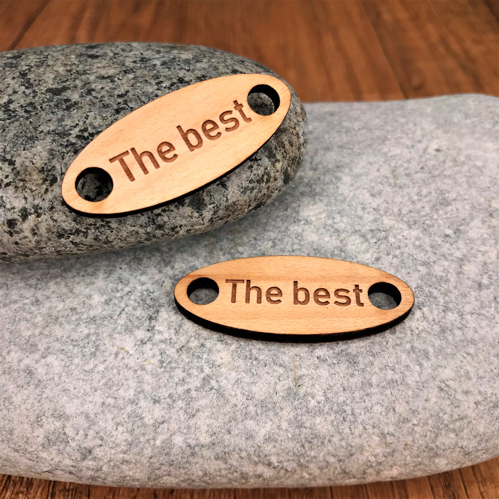 Une petite plaque personnalisée ou personnalisable en bois érable ou cerisier, selon vos envies. Il est très facile de les installer, il suffit pour cela de les fixer avec vos lacets.