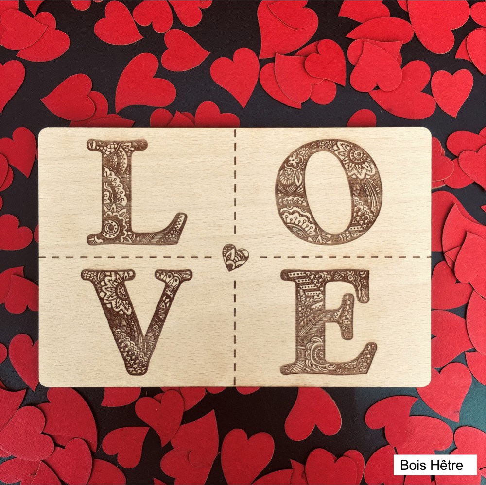 - Carte postale bois Love