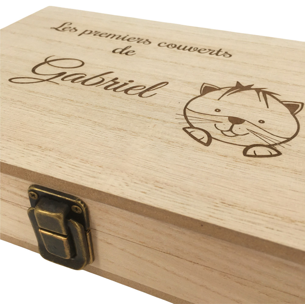 Très satisfaite de ce coffret-couverts enfant avec une très belle gravure laser personnalisée, magnifique, la Perfection C’est un très bon travail ! Belle écriture !