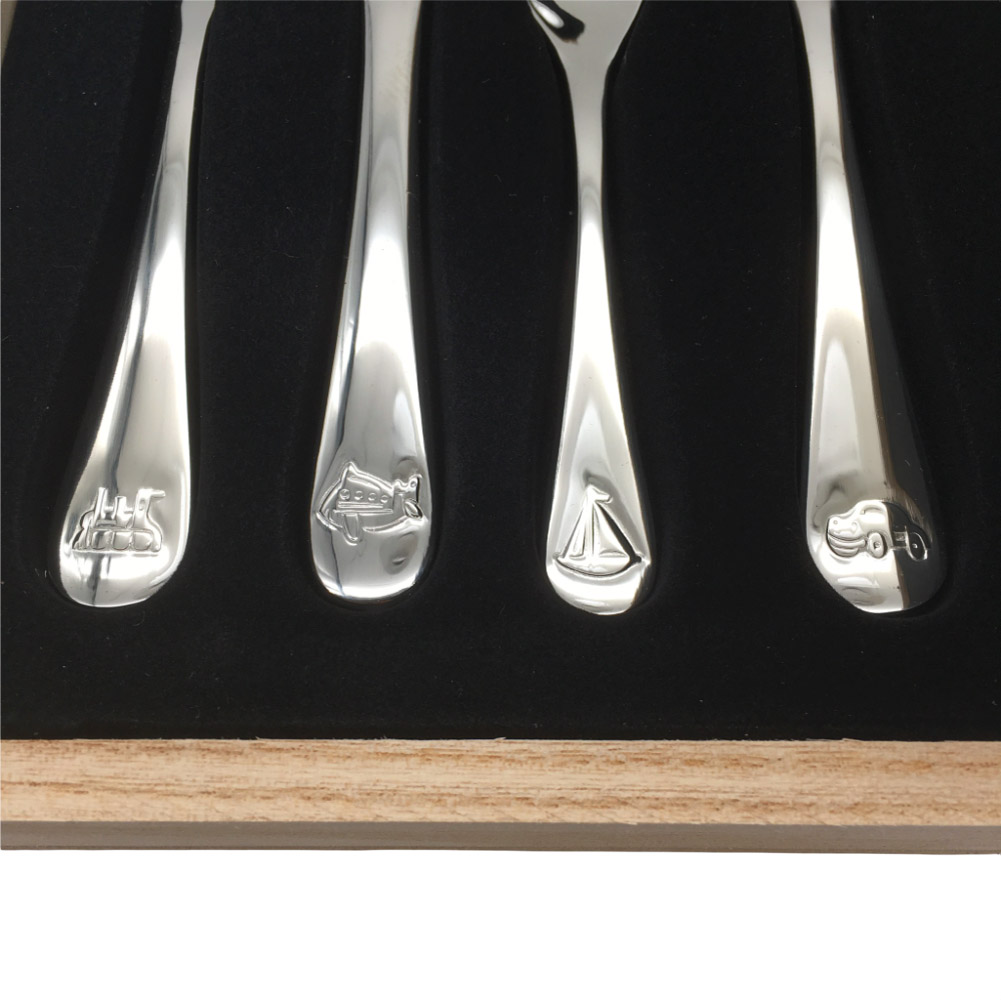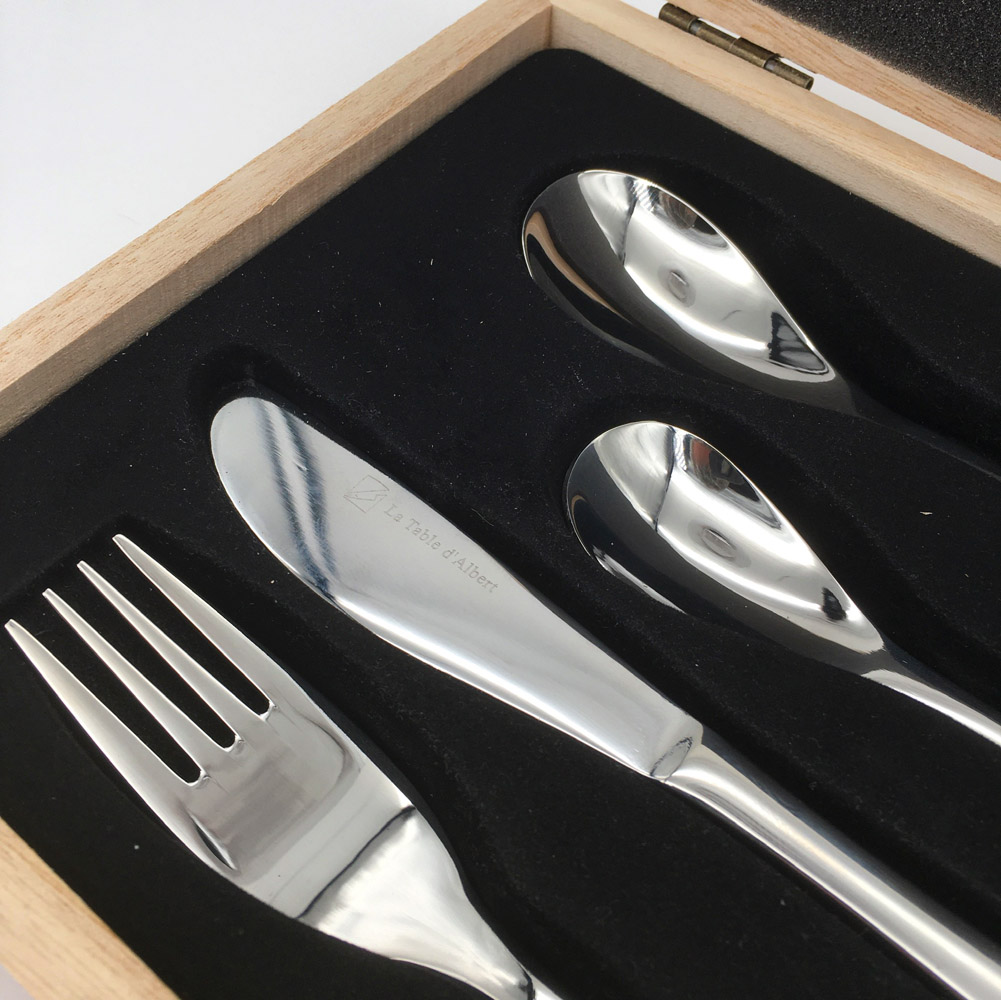 Il comprend 4 petits couverts dont chaque manche est agrémenté de petits dessins ludiques en relief. Ils bénéficient d’une finition polie miroir élégante sur les 4 pièces. En inox, les couverts peuvent tout à fait passer au lave-vaisselle.