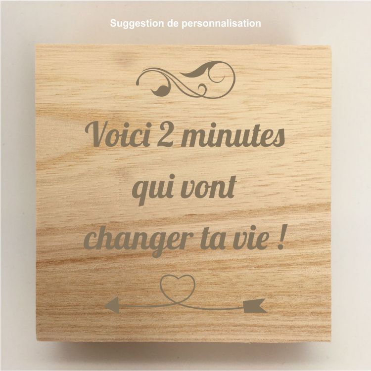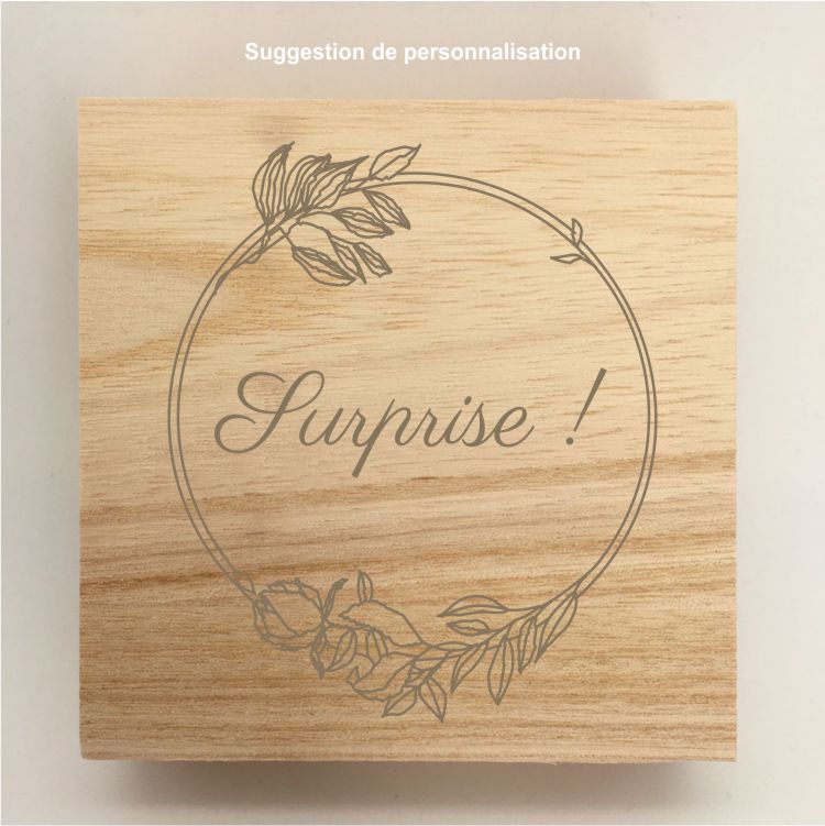 - Boîte en bois brut avec gravure laser sur le couvercle