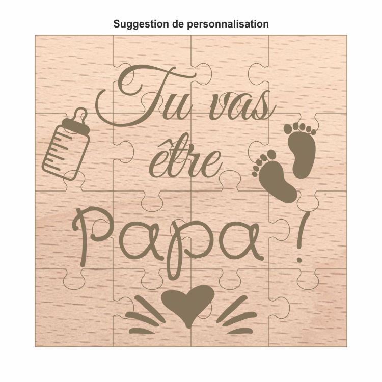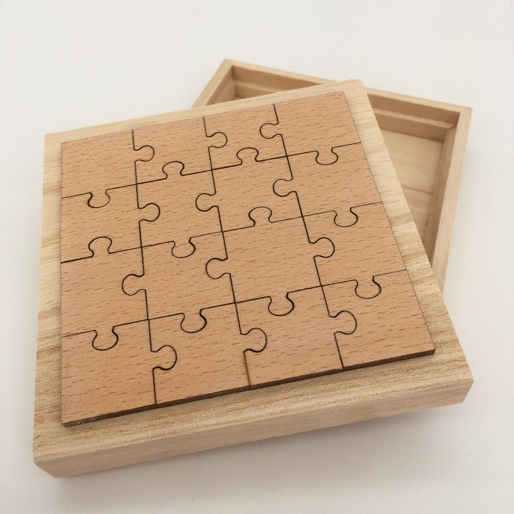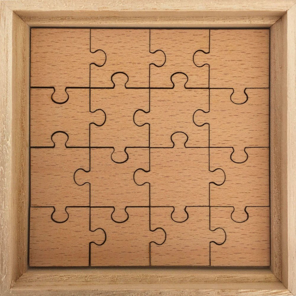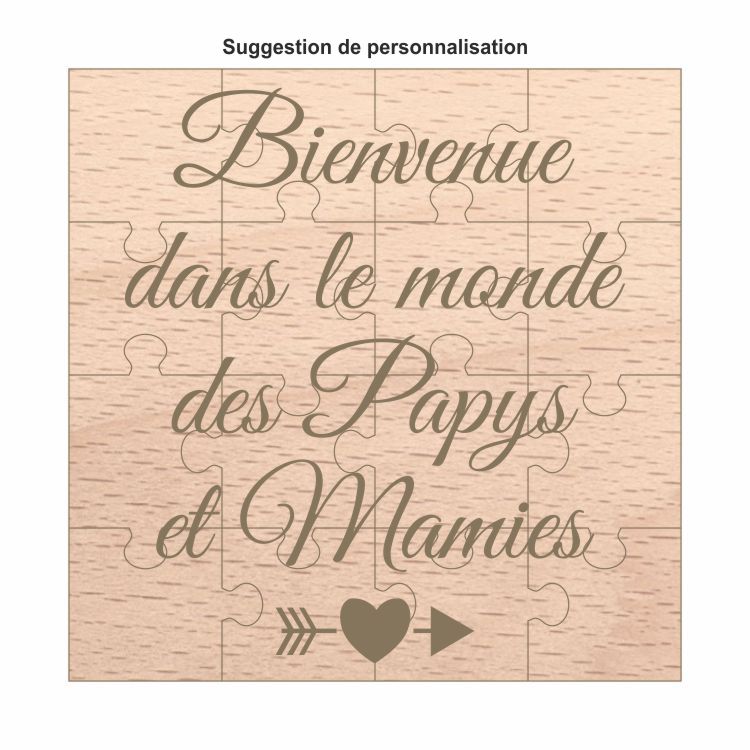 - Puzzle entièrement personnalisable de 16 pièces en bois de hêtre