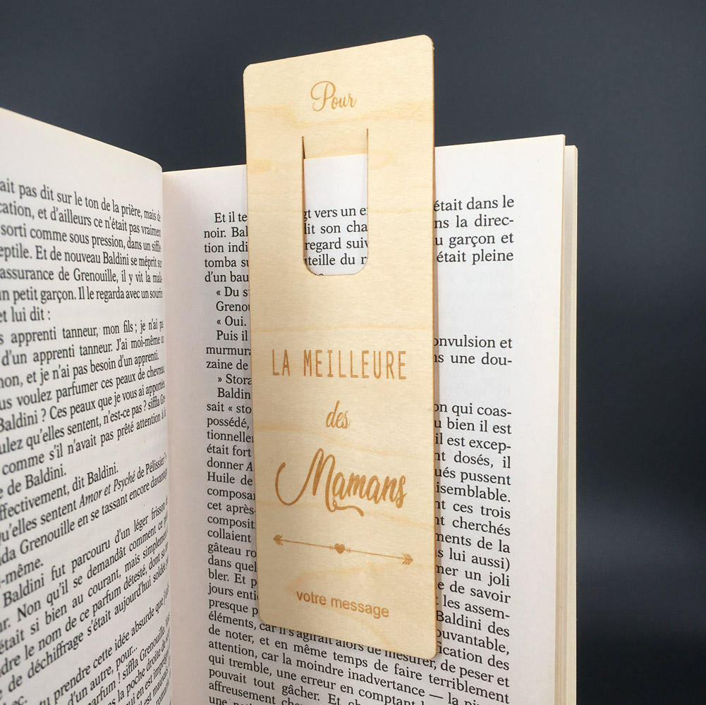 Nous réalisons nos marque-pages bois personnalisés dans du bois de contreplaqué en érable de 1 mm flexible. Nos marque-pages bois personnalisés sont gravés au laser avec une incroyable finesse et précision. . Vous aurez forcément un coup de cœur avec le Marque-page La meilleure des mamans que vous pourrez personnaliser pour en faire le cadeau unique. N’hésitez pas à fouiller dans la catégorie des marque-pages personnalisés, vous aurez certainement envie d’en refaire un autre. Nous fabriquons tous nos marque-pages dans notre atelier en Normandie. Alors, nous vous souhaitons de bonnes lectures, et c’est sûr… vous ne perdrez plus jamais la page !