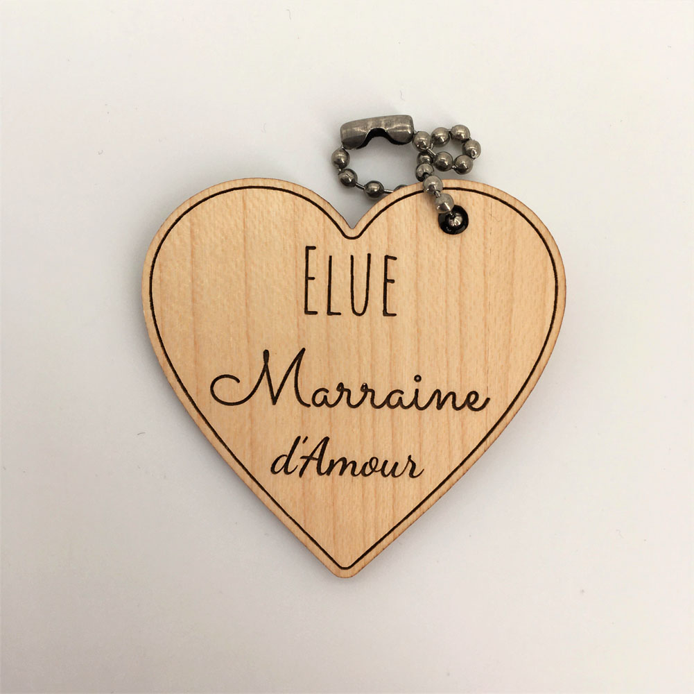 - Porte-clés bois Marraine d’amour