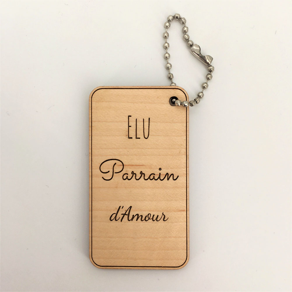 - Porte-clés bois Parrain d’amour