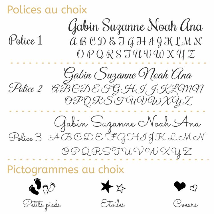 2 – Choisissez la typo du prénom parmi les 3 proposées (voir photos dans la galerie)