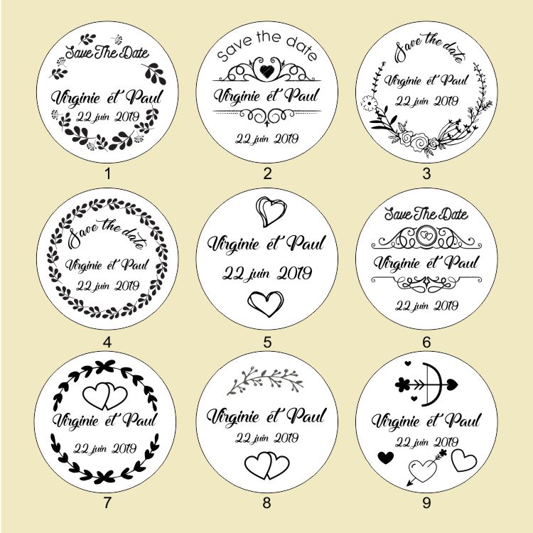 Vous ne résisterez pas à l’envie de tout tamponner avec notre Tampon bois Save the date !  Votre mariage approche ? Alors il est temps d’informer vos proches ! Nos tampons bois personnalisables sont faits pour vous. Choisissez parmi nos 9 modèles pour y trouver le visuel de vos rêves. Des cœurs, des fleurs, des couronnes et encore des cœurs, en d’autres termes, testez celui qui vous ressemble le plus. La monture de nos tampons bois est en hêtre et vient du Jura. La gravure laser est fine et le rendu fera sensation sur vos courriers ou sur vos faire-parts. Avec notre Tampon bois personnalisable Save the date, votre mariage ne passera pas inaperçu !